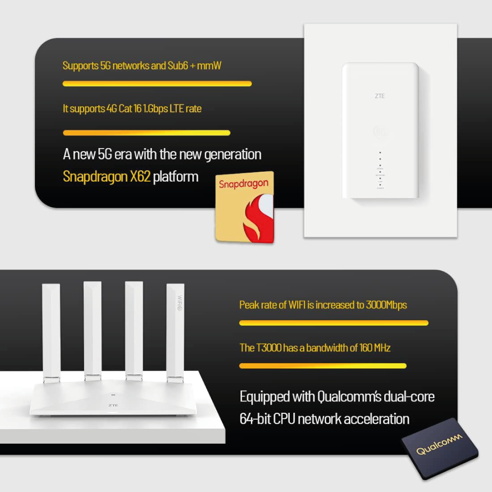 Die 5G-Außen-CPE-Antenne der neuen Generation von ZTE gepaart mit dem Miracle WiFi 6 Router T3000 sorgt für ein Signal- und Geschwindigkeitserlebnis höchster Qualität. Eröffnet eine neue 5G-Ära mit größerer Abdeckung für bis zu 128 Benutzer und einer einfachen Mesh-NFC-Verbindung mit einem Klick, perfekt für Privathaushalte, Unternehmen, Ferienhäuser und Villen. Die kompakte Größe und das geringe Gewicht ermöglichen eine einfache Installation, einschließlich Signalanzeigen und einer APP, die Sie bei der Auswahl der besten Position für CPE und Router unterstützt